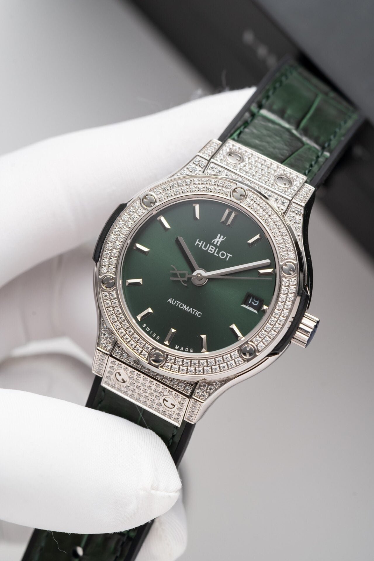 Đồng Hồ Hublot Classic Fusion Titanium Green Đính Full Đá 38mm (2)