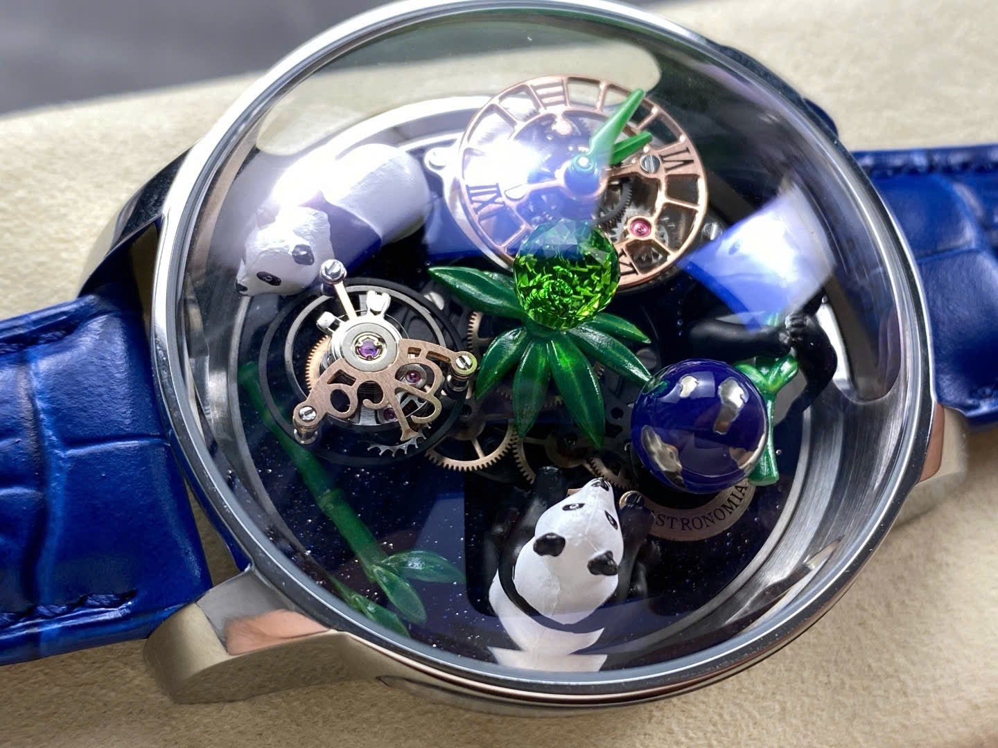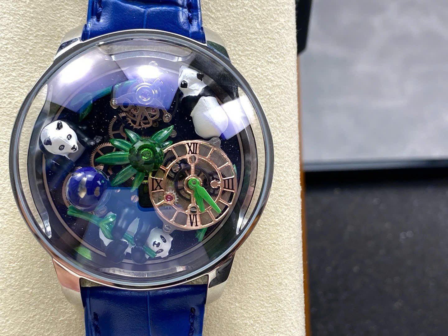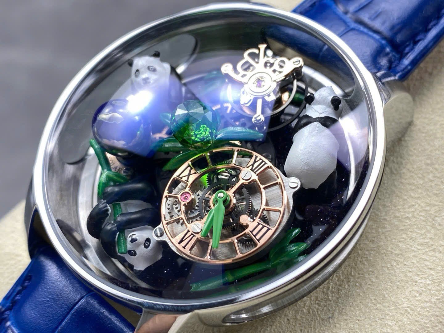 Jacob & Co Panda Watch Leather Strap Blue 50mm