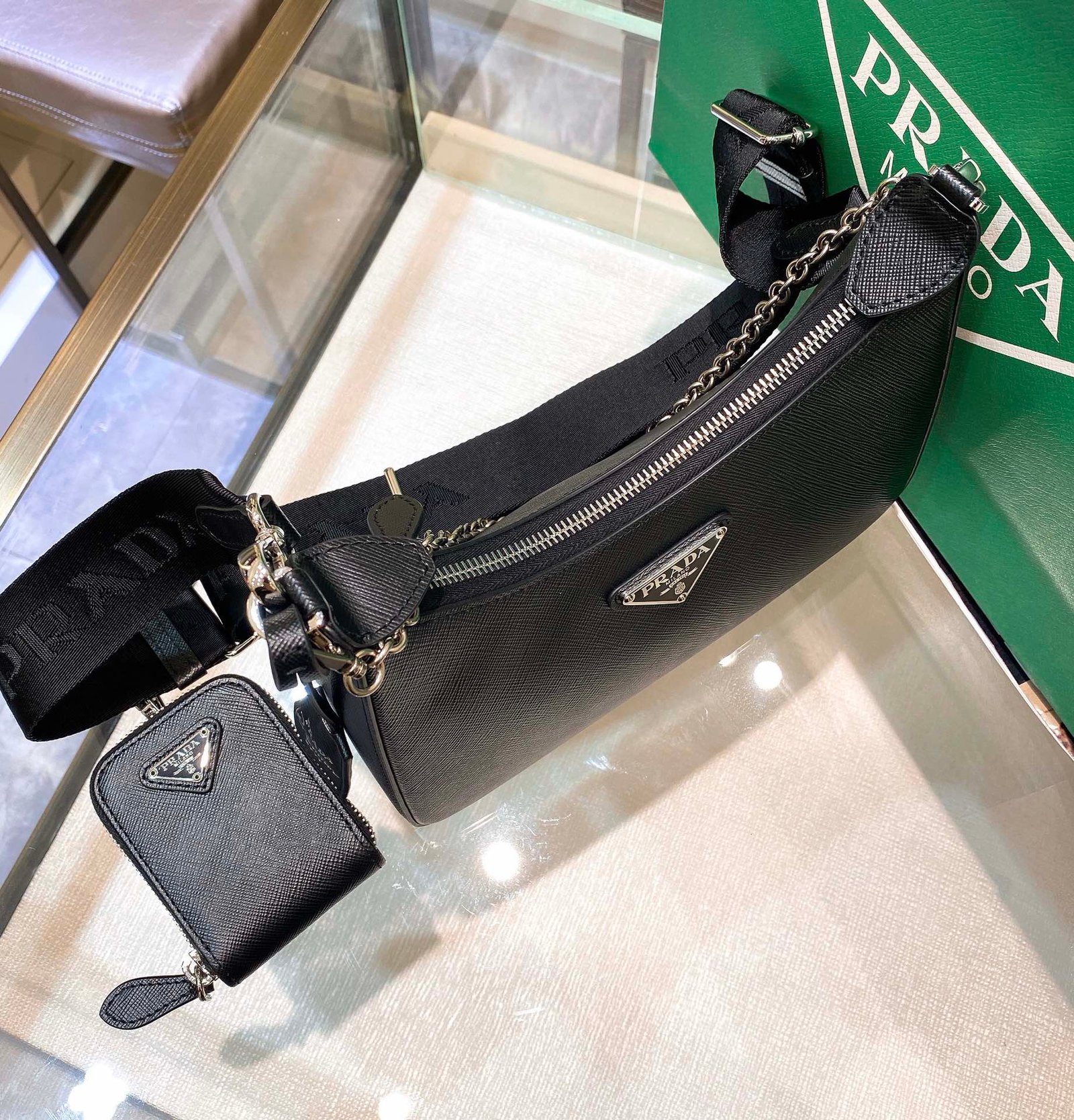 Prada Re-Edition 2005 Saffiano Leather Bag Black For Women, Women’s Bags 8.6in/22cm