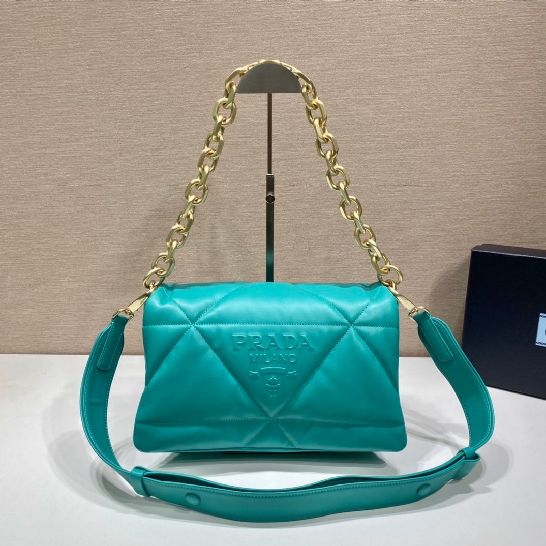 Prada System Nappa Patchwork Shoulder Bag Jade Green For Women, Women’s Bags 7.5in/19cm