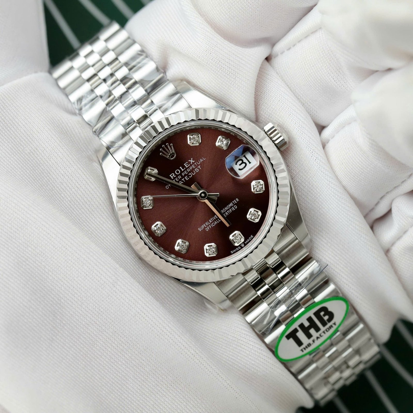 Đồng Hồ Rolex DateJust Replica 11 Mặt Vang Nho Dây Jubilee Xưởng THB 31mm (2)