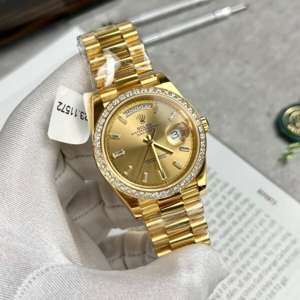 Đồng Hồ Rolex Day-Date Bọc Vàng Thật Độ Kim Cương Moissanite GM V2 40mm (2)