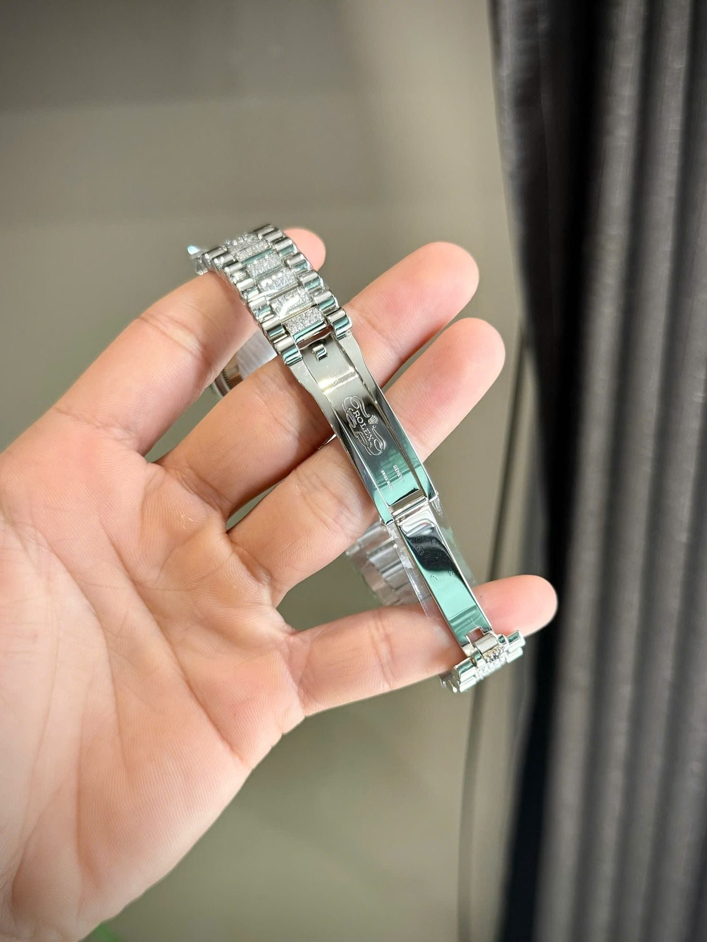 Đồng Hồ Rolex Day-Date Chếc Tác Đính Kim Cương Moissanite Cọc Số Đá 7 Màu 36mm (2)